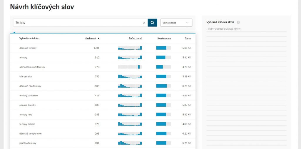 Dalším důležitým parametrem je správný výběr klíčových slov. Tento výběr není vhodné brát na lehkou váhu a použít k tomu nástroje, které naleznete třeba na markeminer.com nebo na sklik.cz, avšak je potřeba věnovat pozornost tomu, že klíčová slova přes marketingminer.com jsou určena pro Google, avšak sklik.cz je určen pro vyhledávání na Seznamu. Avšak práce s klíčovými slovy nekončí v tom momentu, kdy si je jednou najdete. Je potřeba tato klíčová slova kontrolovat, zda jsou stále relevantní a vyhledávaná. Pokud najdete pro Vás výhodnější klíčová slova je vhodné jej využít a upravit svůj web tak, aby maximalizoval svůj potenciál.