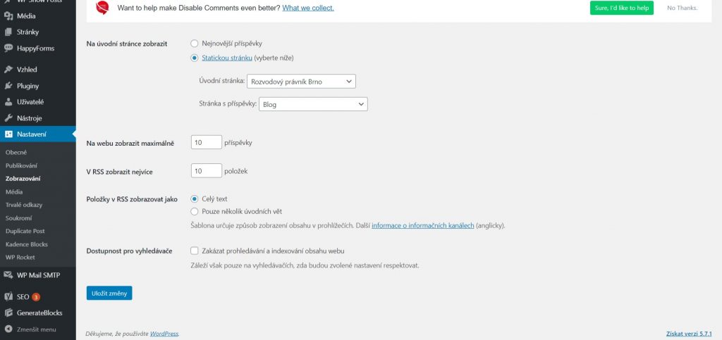 Prvním faktorem, který si musíte zkontrolovat je indexace. Indexace slouží k tomu, že povolíte robotům, aby procházeli Vaši stránky a zařazovali je do svých systémů, tím pádem se budete zobrazovat po vyhledávání. Bez povolení indexace se nebudete vůbec vyhledávačích zobrazovat, proto je potřeba dát pozor na to, abyste jej měli povolenou. Například ve WordPressu indexaci povolíte v sekci nastavení – zobrazování – dostupnost pro vyhledávače.